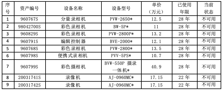 以上设备报废公示一周,如需了解设备情况,请联系电视学院。